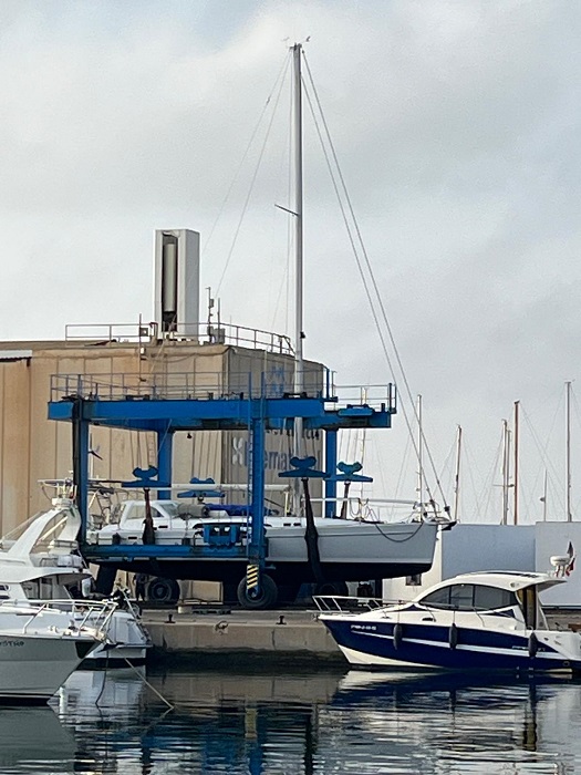 From Gibraltar, I motor-sailed east to Almerimar, Spain, about 150 miles, where she was hauled for the season. The yard there was able to repair the rudder and Pandora is as good as new once again.