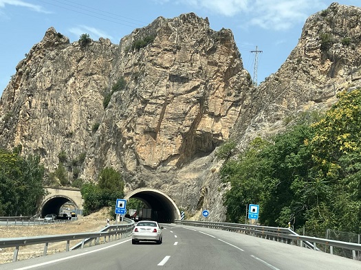 With our little Fiat 500, I had to constantly downshift to keep moving as the grades were pretty steep and in spite of my best efforts, wasn’t able to keep to the 100 KPH speed limit except when the road was flat or, better yet, downhill. I am fine with little cars but did feel quite exposed on the highway when surrounded by the tandem trucks that were constantly around us.