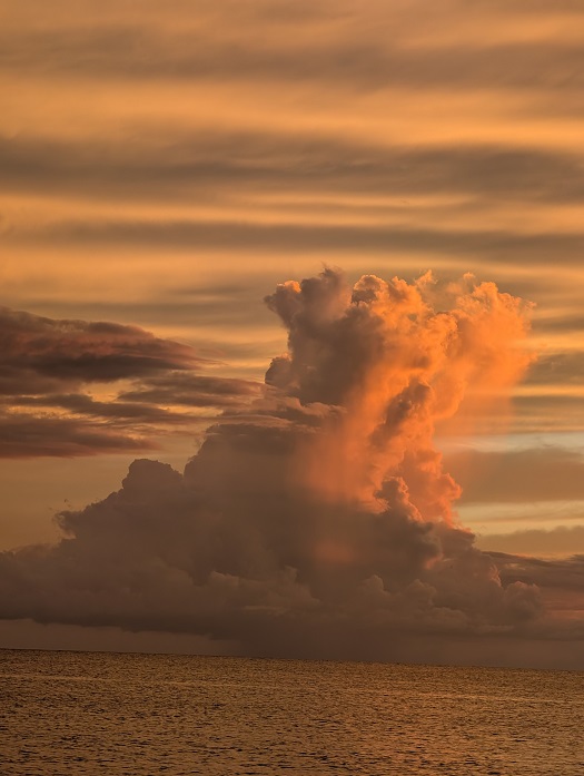25th June 2023 Perhaps the best part of being on passage is the constant display of interesting clouds. My favorite deck watch is from 03:00 to 08:00 as I am treated to a sunrise most every morning. I often miss the sunsets as I am generally busy cooking dinner at that time.