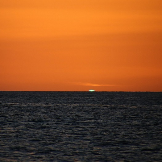 3rd September 2021 A “green flash” is legendary in the tropics and when the horizon is clear of clouds you can stand on deck and watch for the pop of green on the horizon as the sun drops below the sea. To celebrate the moment, we often “blow the conch”, a sort of trumpet made of a large Bahamian conch shell with the top removed so you can blow into it.