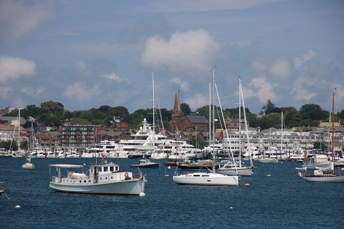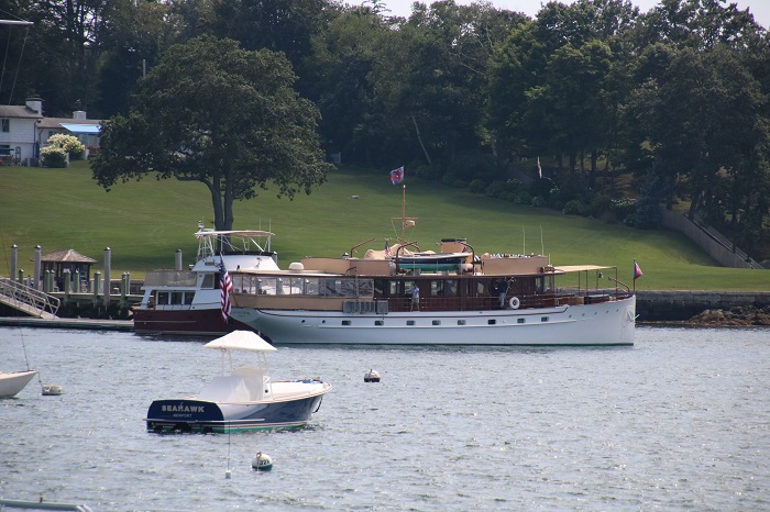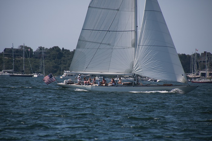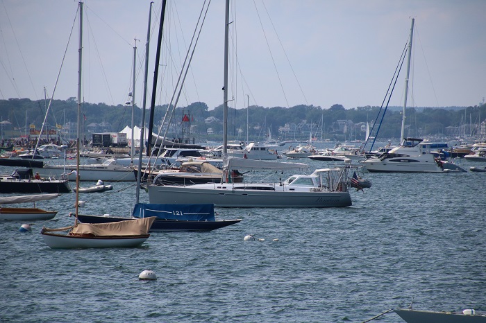 Saturday evening’s kickoff event was cocktails on the lawn at Harbor Court, the Newport clubhouse of the NYYC.   It’s quite a building, once the private home of the Brown family, founders of Brown University.   Not a bad spot to have a G&T on the lawn.  Sorry, no photos of the event.  I expect that the group would have frowned on  paparazzi.  I was surprised to find that I knew quite a few folks that were attending.  As an aside, I approached one woman that I knew pretty well from Essex Yacht Club and when she saw me, probably out of shock, said “what are you doing here?”, seeming to suggest that I had somehow just showed up and crashed the party, knowing that I was not a NYYC member.  Unfazed, I chirped “Pandora will be acting as tender to a club member’s boat”.  Not sure she was convinced.