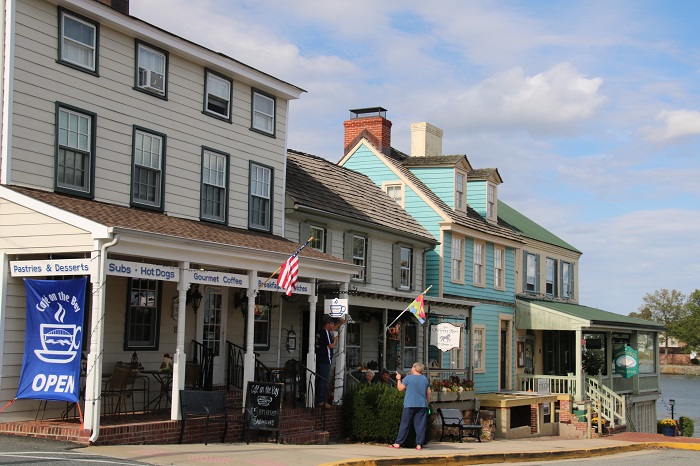 We anchored on Sunday night on the DL just north of the Canal entrance and then headed into the Canal and Chesapeake City on Monday morning. With an expected wind shift back to the north on Tuesday we decided to wait a day and enjoy the quaint colonial town before continuing south to Annapolis. Main Street has some really lovely old buildings.