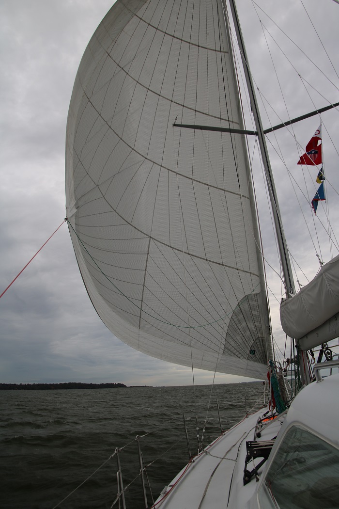 As I write this it’s Tuesday morning and we are broad reaching down the upper Chesapeake from Chesapeake City toward Annapolis at better than 8kts where we spent yesterday enjoying the charms of this beautiful colonial town. Here’s the view as we make our way south. It’s a cool day with a nice breeze out of the north.