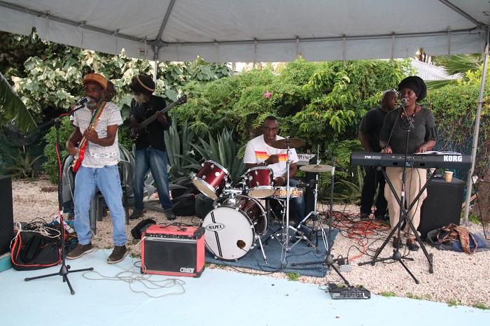 Yes, Pandora had it easy and now we are here in Antigua enjoying the fun.  And, speaking of fun, the parties have begun and last evening a local art gallery, Rhythm and Blue, owned by artist Nancy Nicholson, had her season opener party, timed to allow the Dawgs to be a part of the fun.  With what seemed like an endless stream, or river, of rum punch and appetizers along with a terrific reggae band, the event was really a lot of fun. A great turnout.