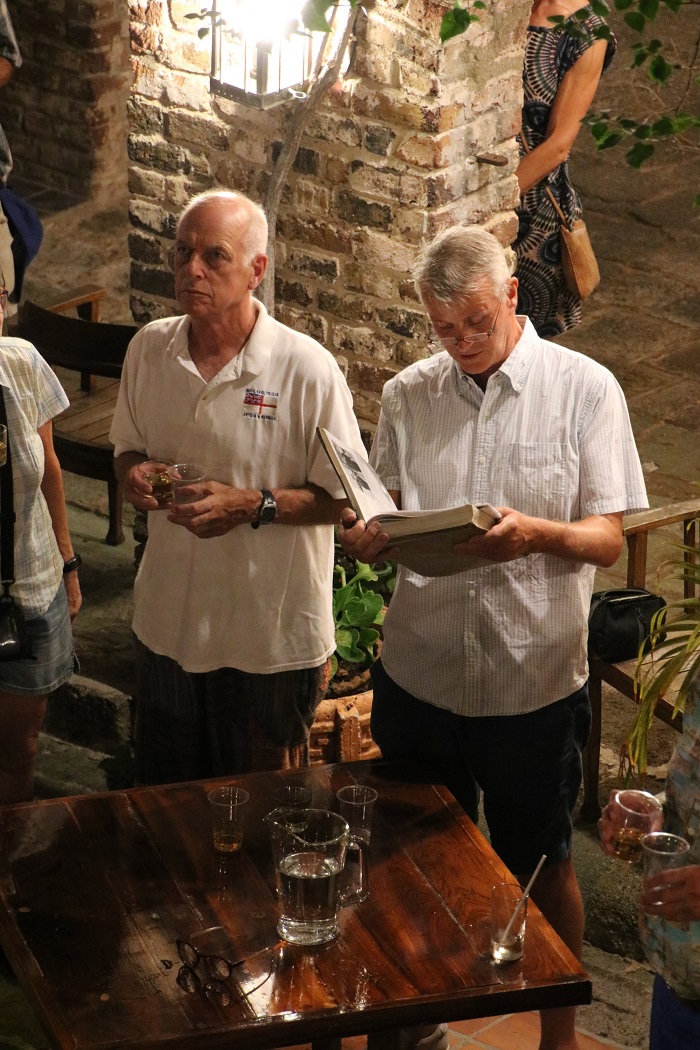 After so many events here since the first boats arrived more than a week ago,  it’s hard to say which event was the “best”.   I loved them all but the one event that is particularly special to me is the Tot Club.  You know, the group that Toasts the Queen each evening, carrying on a long tradition in the British Navy?