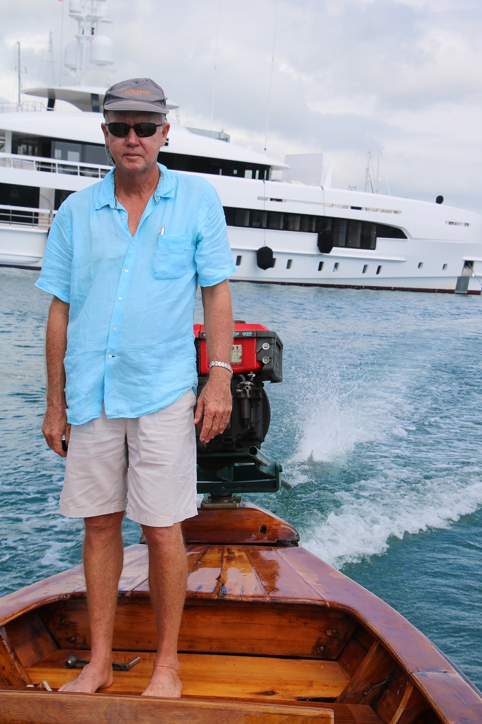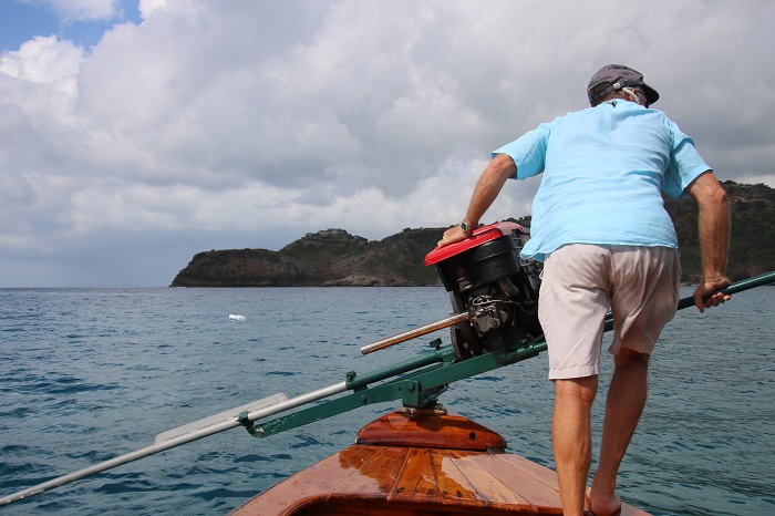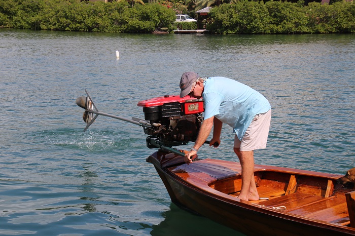 To pilot one of these open boats, you have to stand the entire time while underway. Note the hand crank on the seat behind Paul. No electric start, you just put the lever into the front of the engine and hope that it doesn’t rev up and take your hand off. These boats are very simple and the water cooling is drawn from a tube stuck in the water. No thru-hulls to complicate things.