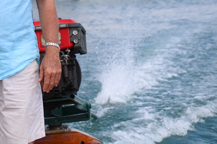 Paul had offered to take me out for a spin so we met at the dock at the Admiral’s Inn. As he approached the dock he picked the prop out of the water to put it in “neutral”, coasting up to the dock.