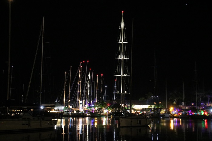Even without the light show, the nightly view of the yachts from Pandora’s deck is beautiful. This photo, a bit blurry in the dark, doesn’t do the view justice.
