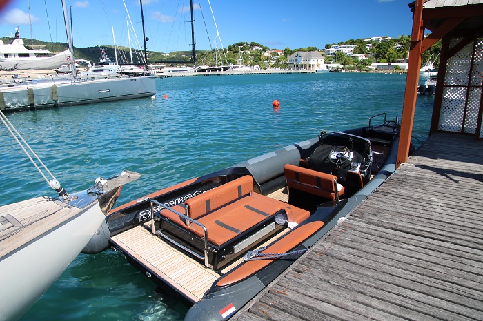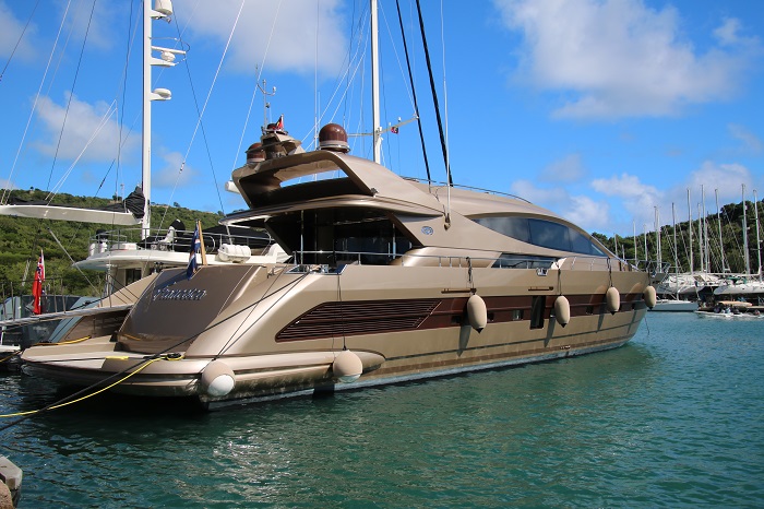 St Barths revelers or not, there’s still plenty of impressive hardware here in Antigua. How about this yacht, small by local standards at 100′, but clearly one that fits in the “go fast” category.