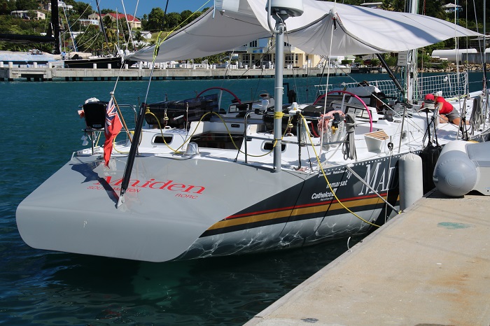 Getting back into the “mere mortals” category, here’s Maiden, the racing yacht that carried the first all woman crew around the world in a Whitbread race in the late 80s. We saw a movie about that voyage at the Antigua Yacht Club last night and met the current crew, ladies again, of course, who are sailing Maiden around the world to raise awareness for women and sailing. I’ve seen the movie “Maiden” once already and was even more moved this time than last. You should check it out. It’s a remarkable story about her skipper Tracy Edwards from England who, against all odds, finally was able to find financial support for the yacht, did remarkably well and ultimately was named Yachtsman of the Year, the first such recognition ever for a woman. Maiden will be open for tours here in Antigua in a few days and I look forward to writing more about this remarkable boat and her story.