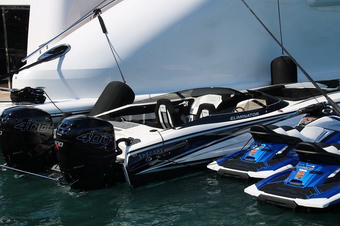 And she’s complete with plenty of “toys” including this 800hp tender. I wonder how fast she goes? Too fast for me in any sort of seaway, I expect, where she would surely launch herself from wave top to wave top.