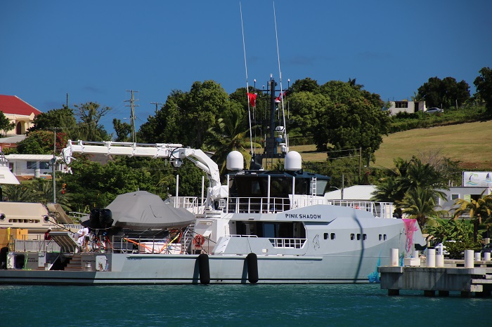 And with “Sun” you can also opt to charter a “shadow yacht”. The aptly named Pink Shadow will be there to carry all the toys you’ll need. The concept, as I understand it, is that by using a shadow yacht, you can go with a Mother ship that is smaller than you might otherwise require. Of course, shadow or not, Here Comes The Sun is still a bit girl at 300′. Going this route allows you to save room aboard and put all those bulky toys on a separate boat, ship, yacht, or whatever you want to call it that can follow you around like a little pink puppy. Catch a gander at the crane that Lil Pink sports?
