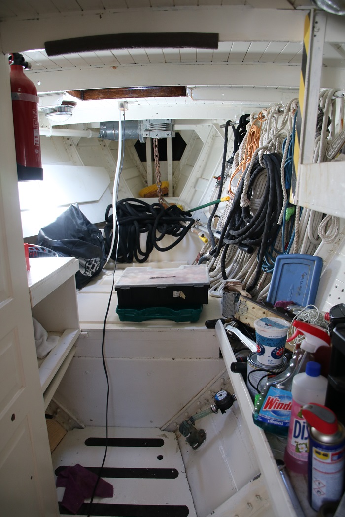 It’s clear from the stuff stored in the forepeak that she is a yacht that is used and not some sort of static museum piece.