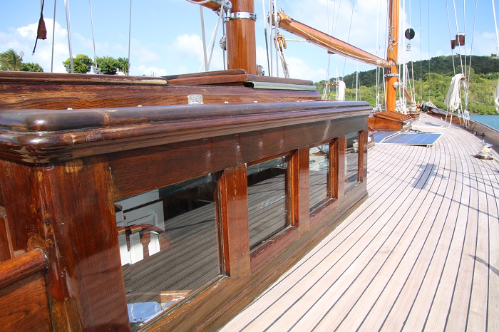 Gerald keeps here in Antigua full time and stores her, during the hurricane season, in what might be best described as concrete bunker designed to withstand hurricane force winds. It is in her cocoon that a long list of off-season chores are done to keep her looking new as she prepares to enter her second century.