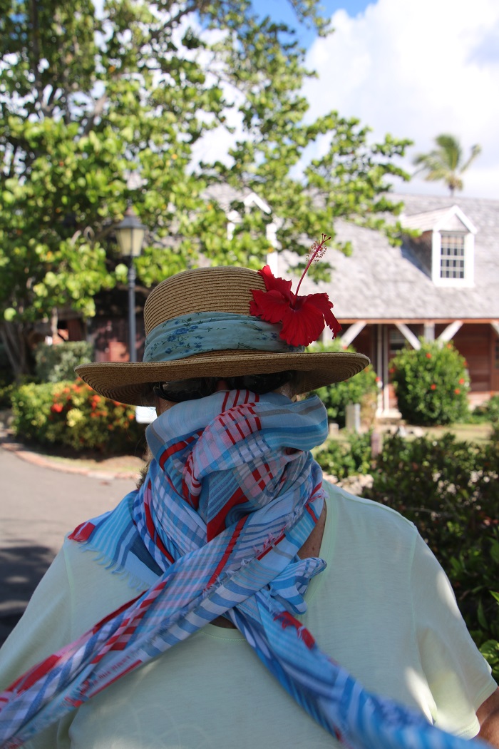 While there are still considerable restrictions in place on the island, being able to go ashore, even for a short walk, without feeling like a convict, was great. Brenda dressed up in her best Covid-19 protective gear and out we went. And, you can rest assured that under that elegant silk scarf is a proper mask given to her by another cruiser.