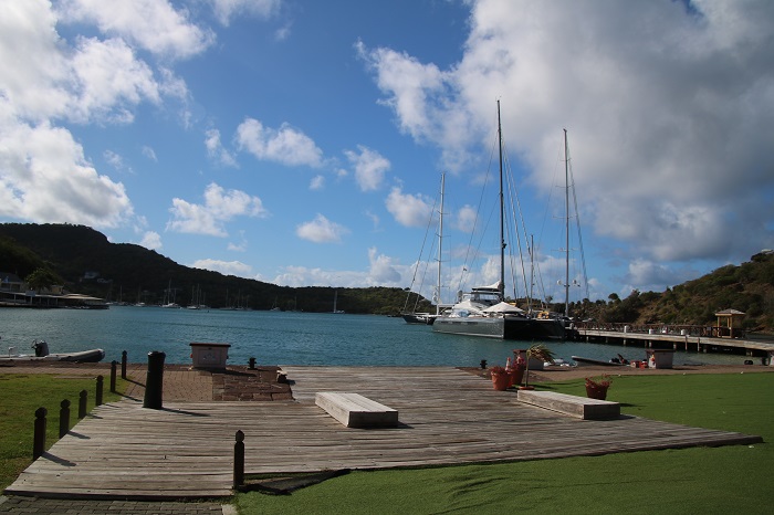 The entrance to Nelson’s Dockyard is normally bustling with yachties and tourists. Not today.