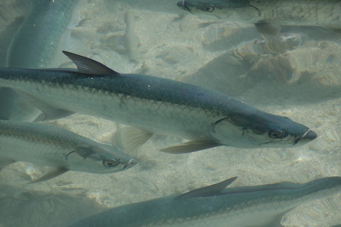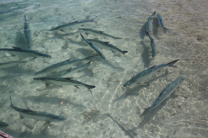 And, a school of enormous tarpons looking for a handout where fisherman normally clean their catch.