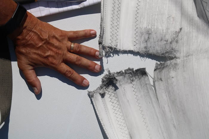 The overall distance over the bottom to Hampton was 685 miles and yet we clocked only about 535 miles through the water with the balance being the northward “push” of the Stream.   We were in the Gulf stream all the way from a few miles out of Ft Pierce until we rounded Cape Hatteras so the GS gave us a lift of 150 miles over the course of the trip.    To put it another way, we moved through the water at a speed of about 160 miles a day and the current pushed us an additional 75 miles per day during that same period.   We tied up at the Hampton YC yesterday for one night, in part, because we had to address the misaligned roller foil and fix the rip in the jib.  Trying to do that at anchor, with the boat swinging to the wind, would have been quite challenging.