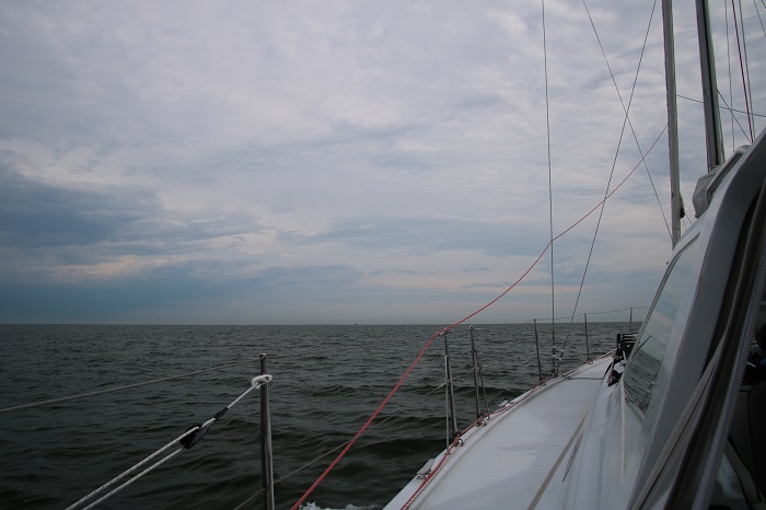 When we finally rounded Hatteras, and exited the Stream, things cooled down a bit and we had some wind for at least part of the last 100 mile run to the Chesapeake and were able to sail some of the time.