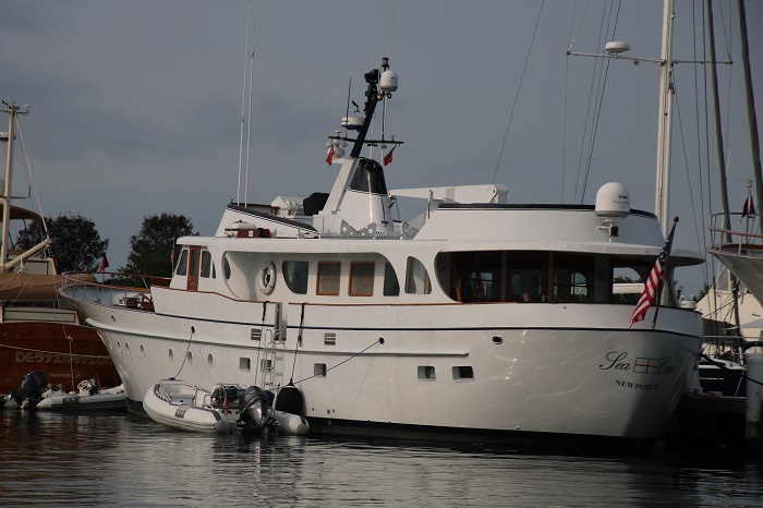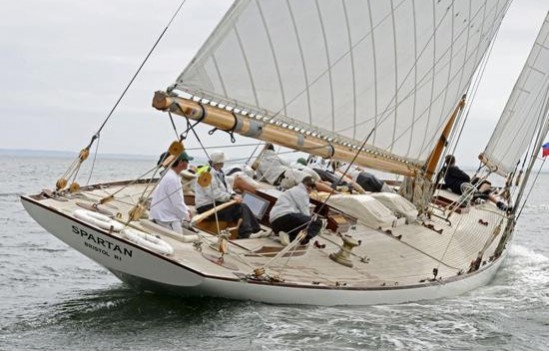It’s always interesting to see some of the same yachts, year after year. This is Spartan, the last remaining of the NY 50s class, built in Bristol RI by the famous builder Herreshoff, one of several built for members of the NY Yacht Club, launched in the spring of 1913. Her current owner spent millions having her restored during a project that began in 1981 and took 8 years. It appears that she is, once again, having major work done.