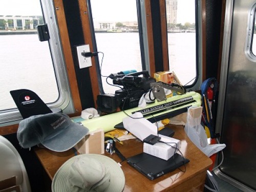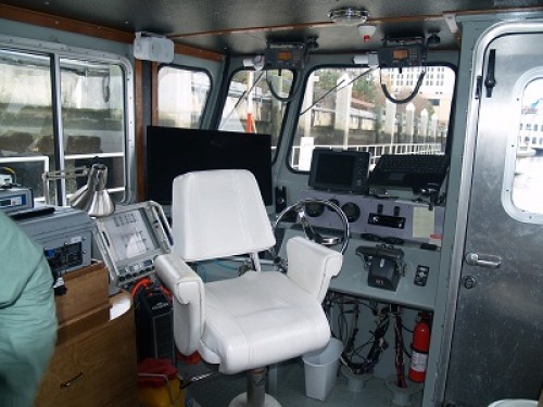 This is what was what we had picked up.  I am so glad that we had someone standing by to help. I must have someone watching over me, my own personal guardian angel along with Brilliant.While I was waiting for the current to slacken at low tide, I decided to drop by and visit another boat on the dock.  This survey boat was waiting for a job up river and the owner/captain was only too happy to answer some questions.    Fred’s boat is a technological wonder and he was happy to share information about it with me.