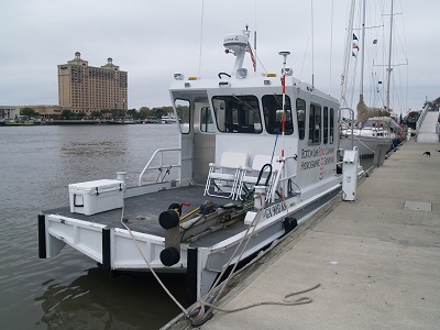 The boat is small enough to tow behind a truck so he can move from place to place easily to take on jobs.  After he is finished in Savannah he was headed up to New Jersey to survey a harbor near an oil refinery that had been badly damaged by Sandy.  It seems that some equipment had washed into a harbor there and he needed to map it so that the stuff could be pulled out by a salvage company.