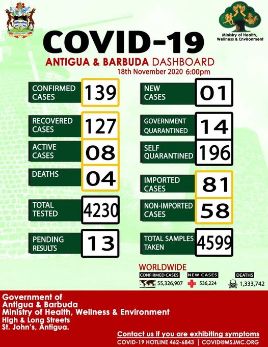 This is the current “dashboard” for Antigua showing the rate of infection currently on the island. There have been a very limited number of “community infections” with most coming in by air from other countries. Fortunately, the bulk have been captured shortly after landing and with good contact tracing, the virus has not been able to gain a foothold on the island.