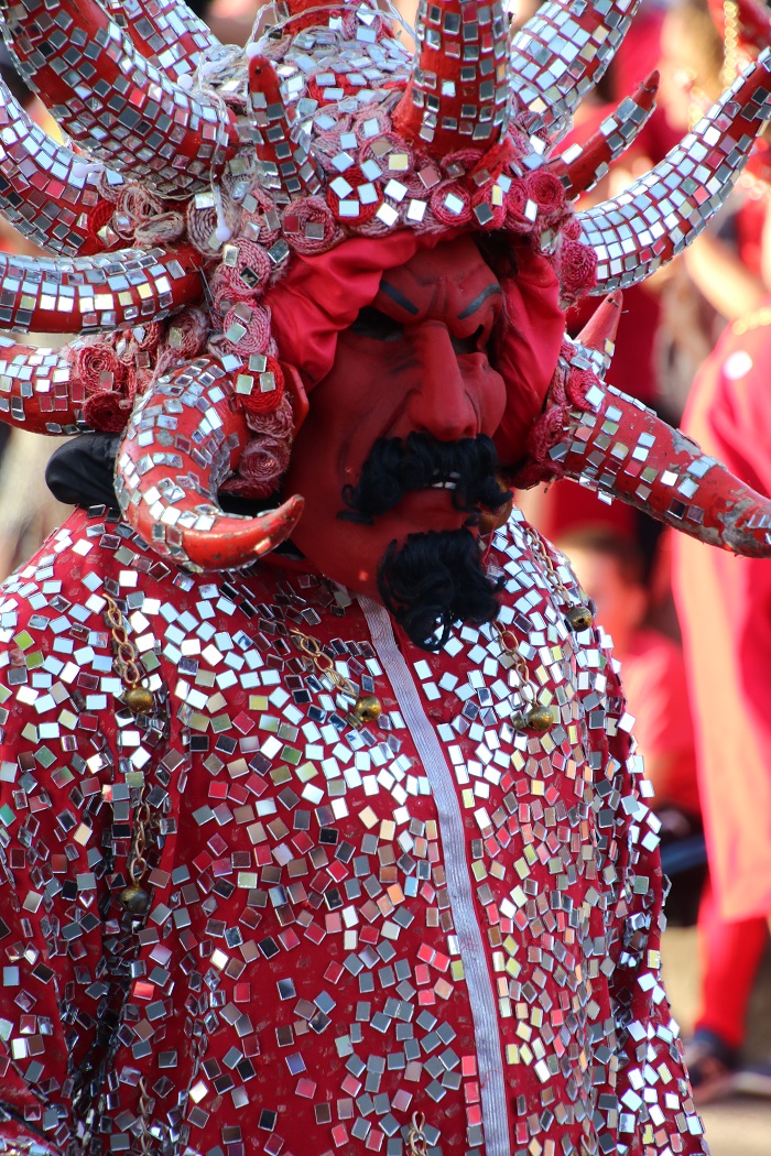 Remarkably elaborate “devils” paraded by for hours.
