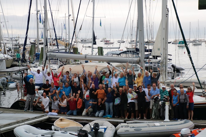 All of the captains and crew were thrilled as you can see from this group shot. To see so many enjoying the result of the work that went into the rally by so many was very rewarding. Note the couple on the far right, front row. That’s Ruth and Herb of MV Ancient Mariners who visited us to join in the fun. They were not a part of the rally but made a point of coming to Rockland to be with us.
