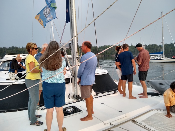 That evening one couple on the trip opened up their boat for a cocktail party. No wonder cruising cats have become so popular. Loads of room up on the bow.
