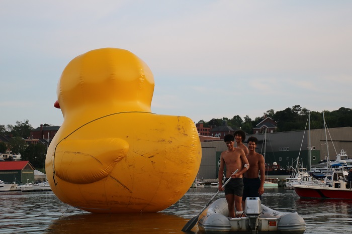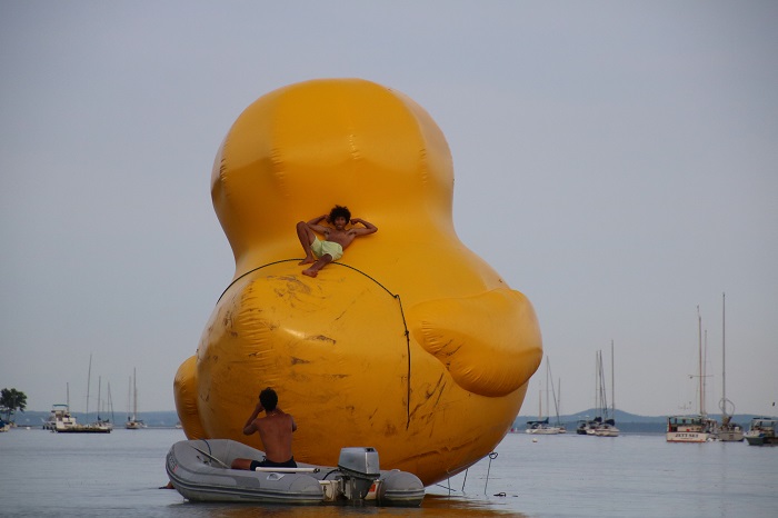 I wonder how they chose who would would be the climber? The one to conquer the biggest rubber duckie in Maine?