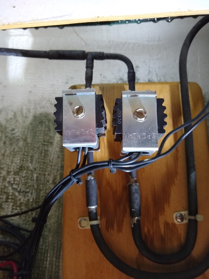 Doesn’t look like much does it? The little black square blocks are the two zone valves. Messy but it works. To make matters worse in replacing them, they are located under and behind the oven. In order to get to them I had to invert the gimbled oven and open up an access panel, a really tight spot.