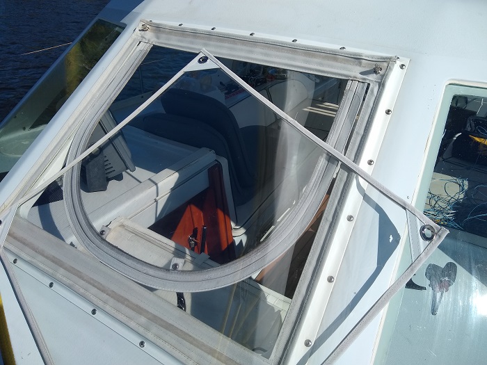 There have been myriad items to fix and add to get her ready to head south and I am very pleased that it’s all come together. One upgrade, small though it may be, was the addition of a “storm window” on the front of the dodger, a hard plastic cover that I can clip over the opening window when things get snotty.