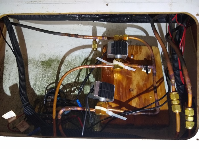 Actually, the install looked a lot better before it was “fixed”, but one of the reasons that the valve failed is that it as oriented in the wrong direction. The “correct” setup was to have the stem oriented vertically so that gravity could assist when the valve closed. In the original install, when Pandora was built, the valves were not set up this way which caused them to fail over time. I will say that it looked a lot less messy back then. However it doesn’t show and now it works just fine, messy or not. Cold beer anyone? Pandora’s got em.