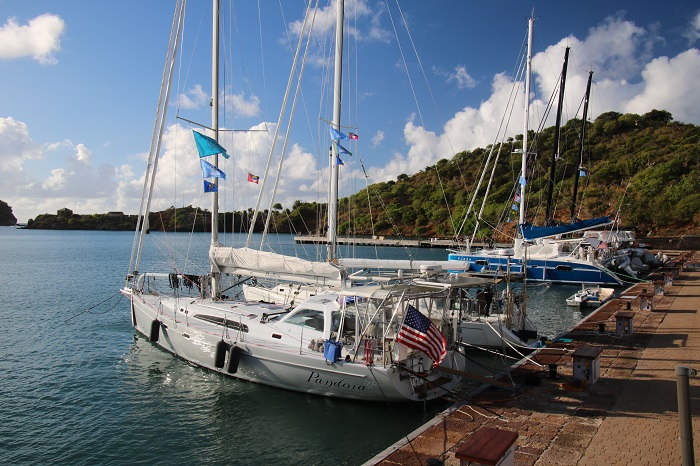 I am so glad to be in Antigua. Pandora is all snug on the dock here in English Harbor and about half of the 50 boats heading here have arrived, with many more to pull in over the next few days. This place is perhaps the most scenic place I have ever been. It just drips of history as the harbor was, for more than 100 years, the Caribbean base for the British Navy.