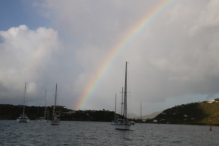 As is so common here, we were treated to a brief shower this morning followed by a stunning rainbow. This is only a sliver as it was tough to capture the whole spectacle. Beautiful never the less and more proof that cruising the Caribbean with covid is still a great place to be.