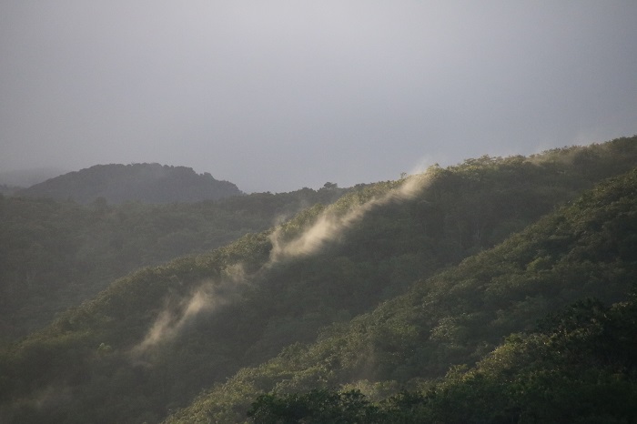 As the sun came up, I could see the mist rising up as the sun dried the dense vegetation onshore. This island has very high mountains, often shrouded in clouds, so there is abundant rain and many steams and rivers.