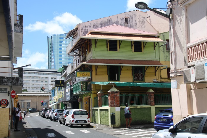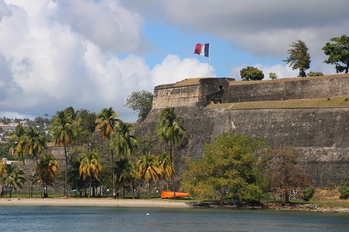 The view from the harbor, with a modern city on one side and a French fort to the other, offers an interesting contrast of old and new with tropical rainforest in the distance.