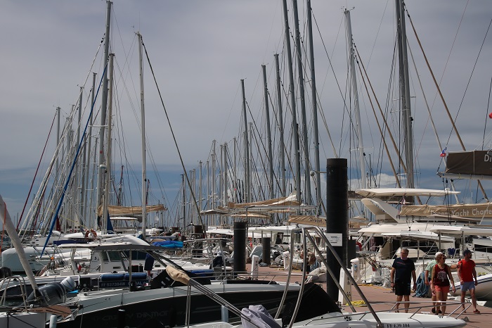 Just one of many piers lined with dozens, no hundreds, of cats and monohulls, standing by and ready for you to jump on board and head out on holiday.