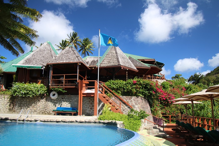 It overlooks the Pitons, long extinct volcanic cones that rise up dramatically, dominating the landscape.