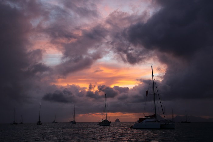 In the evenings the wind is generally a bit calmer and we always enjoy watching the sunsets. A few nights ago the view from Pandora’s cockpit was particularly dramatic following a squall that had passed us earlier in the evening.