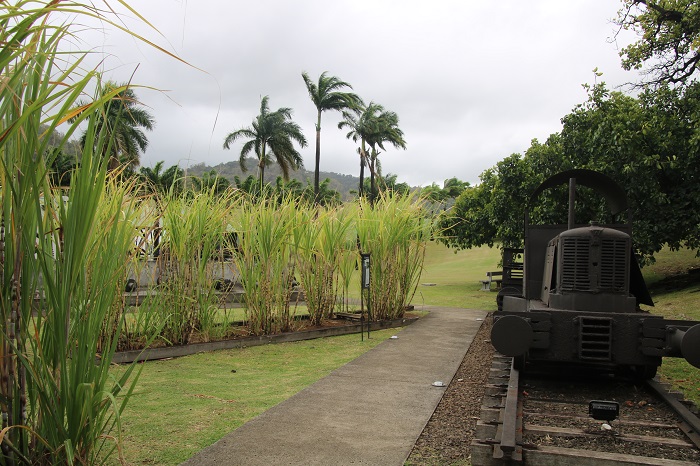 A display garden, with sugar cane and an old narrow gauge steam engine once used to move freshly cut cane to the factory. It’s always a rush to process cane as it begins to ferment within hours of being cut.
