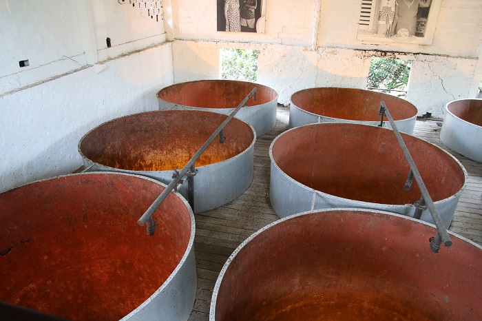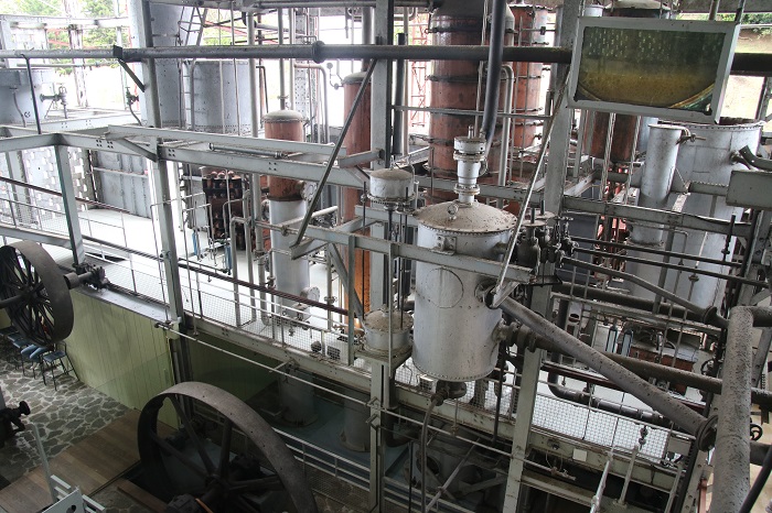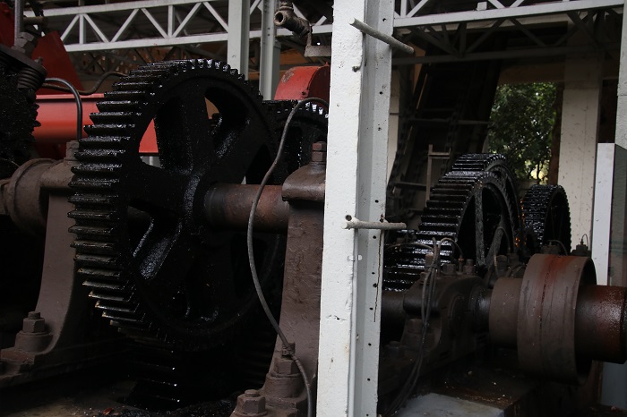 And, speaking of the factory, this equipment has been long abandoned with production now in nearby modern buildings. The old steam machinery and distillery are still open for viewing. These gears once connected a huge steam engine to the cane crushers and other equipment connected by long belts that snaked through the building.
