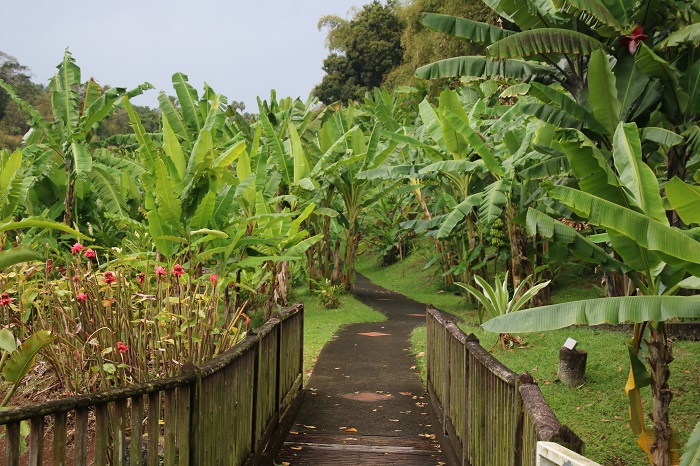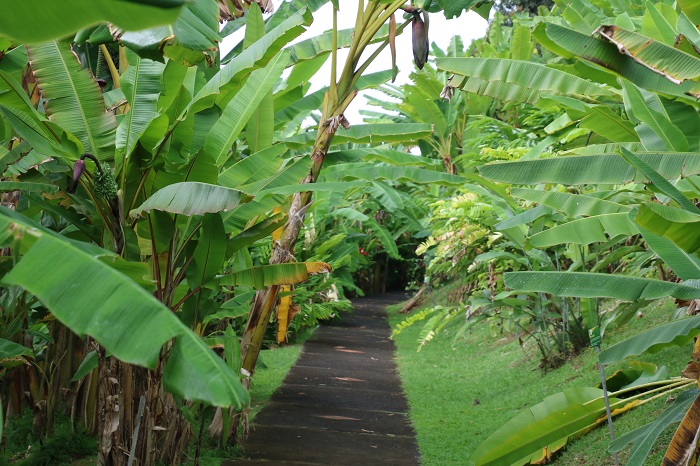 Well maintained cement pathways winding through a variety of bananas from all over.