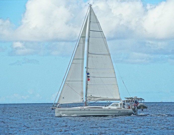 Perhaps I’ll close with a photo of Pandora, under sail, taken for us by a friend. Of course, you know that we were sailing south, because we were on a port tack.