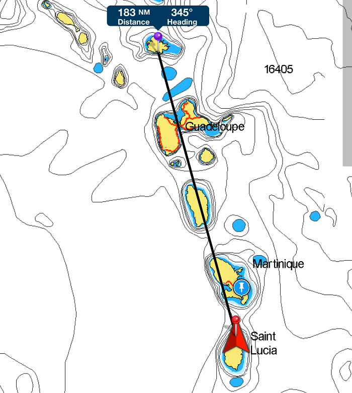 The wind won’t be particularly strong, at about 15kts with gusts to 20, so we should have a decent run and I am guessing that it will take about 26-31 hours to go the 185 miles. Along the way we will pass Martinique, Dominica and Guadeloupe so if we decide that we want to stop, there are plenty of options.