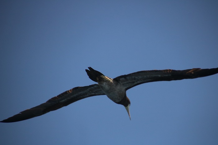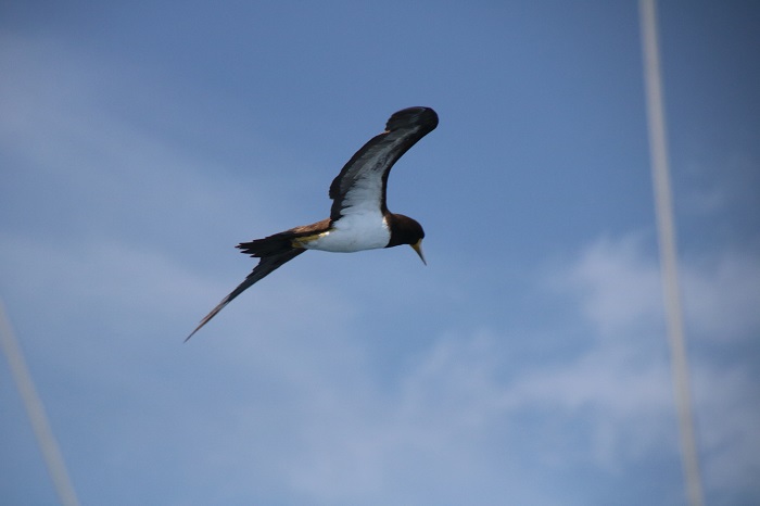 After leaving St Lucia we passed Martinique, then Dominica and finally, Guadeloupe, a passage that took a single day after spending two months heading the other way.  Not a lot to show from the passage except that it was nice to see the islands as we sailed by.As Pandora cuts through the waves, we scare up a lot of flying fish and the seabirds have learned to fly over the waves just in front of our bow to catch the fish that jump out of the water, as they scurry out of our way.  This is a brown booby, an impressive bird that lives just about all of it’s life offshore, only going to land to lay eggs.  This may be another shot of a booby but I am not sure.  I could not find a photo that matched but I think it’s another species. We also passed a large school of very enthusiastic dolphins that leapt from the water, but they are notoriously difficult to photograph.  Sorry, no images.