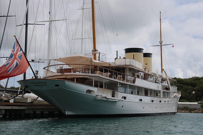 I have been focused on getting aboard her for some racing for the last few years and today I was introduced to her captain by my friend Franklyn, the commodore of the Antigua Yacht Club.  Seth, the captain, was very nice but said that he wouldn’t know for sure until later tomorrow if there is a slot for me.  Fingers crossed.  it would be awesome to be aboard for three days of racing on such a spectacular yacht. And, speaking of schooners.  Ashanti, at over 100′ long, is a beauty and I was aboard her as well back in 2018 for a Tot club event which I wrote about in this post.   The owner is a Tot Club member and has offered to again host the group for a Tot on Saturday and Brenda and I are planning to attend, totally!  We are also going to the Tot this evening and it will be fun to reconnect with my Tot Club friends.  It is rare to see so many wonderful boats in one place and the Classics is one that draws them.  I walked the docks today for a gander.