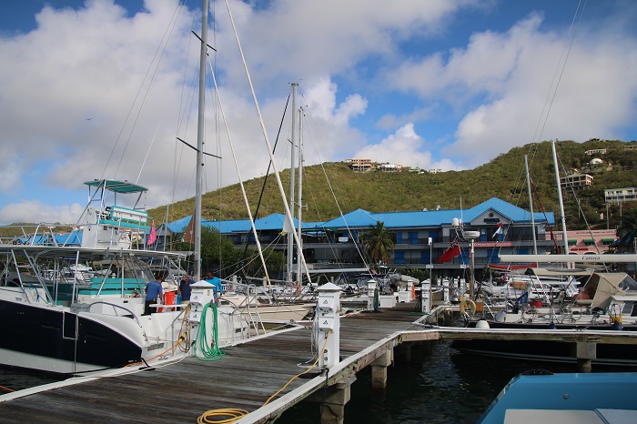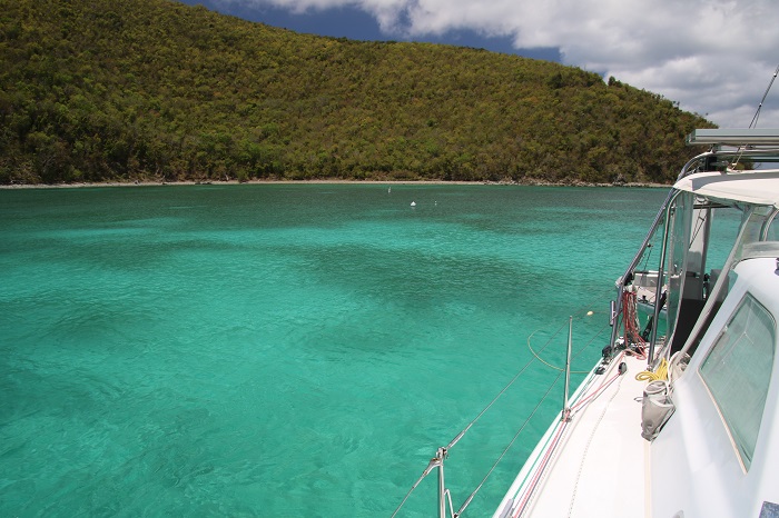 The 120 mile overnight run from St Barts to St John was uneventful and we made good time.  Craig and I took a mooring in the national park, a really nice area, for a few days before Alex arrived.  The water was an amazing blue and there were turtles all over the place.  In preparation for our run north, beginning tomorrow, Tuesday,  we decided to head to a marina in Red Hook, on St Thomas.  It’s a lot easier to prepare, getting the dink up on deck and getting provisions from a marina.  The marina is part of the IGY family of marinas, the same company that runs the one in St Lucia that we stayed at in Rodney Bay.  Their rates tend to be a bit more reasonable than others.  Plenty of services nearby.  The view of nearby St John this morning as the sun came up, was pretty nice. Under the category of “it takes all types” how about this boat near us in the marina.  A great party platform, to be sure. Being in a marina for a few days was a good idea.  A bit of luxury, complete with AC, is a good way to begin a long journey.