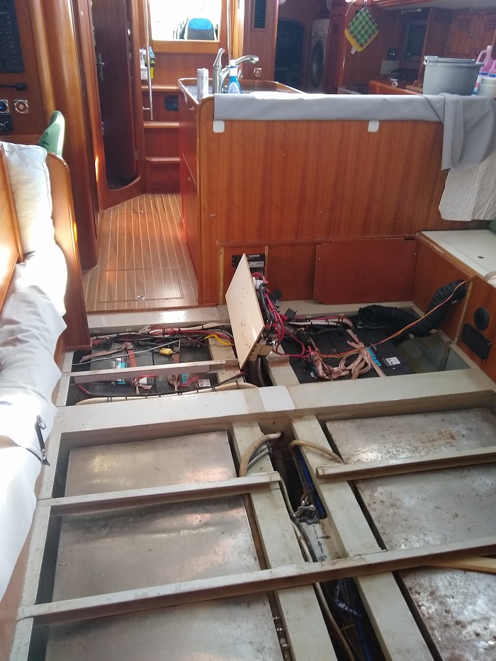 I am not the first owner of Pandora, and have no idea what sort of modifications were made to the electrical system prior to our ownership. It was particularly alarming when the yard discovered that when I had a new new inverter/charger installed about 5 years ago that the unit had not been properly grounded along with other issues. I am told that fixing this problem required that the entire nav station be disassembled, a huge job.